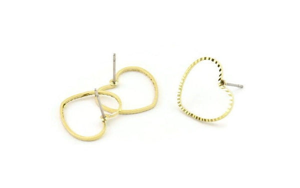 Cutting Raw Brass Heart Stud Earrings