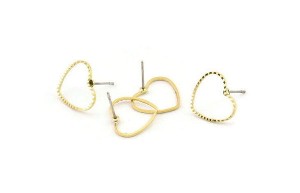 Heart Open Earring, 8 Cutting Raw Brass Heart Stud Earrings (13x14.3mm) D0343 A6354