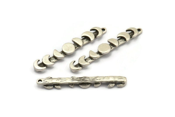 Antique Silver Plated Brass Moon Phases Charms With 1 Loop