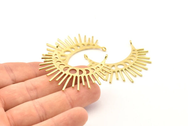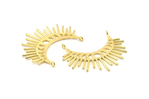 Raw Brass Crescent Pendants With 2 Loops