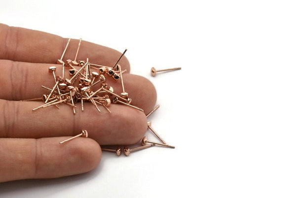 Rose Gold Cube Earring, 8 Rose Gold Plated Brass Square Cube Stud Earrings (3x1.5mm) D1409 A1395