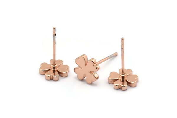 Rose Gold Flower Earring, 6 Rose Gold Plated Brass Flower Stud Earrings (8mm) D1466