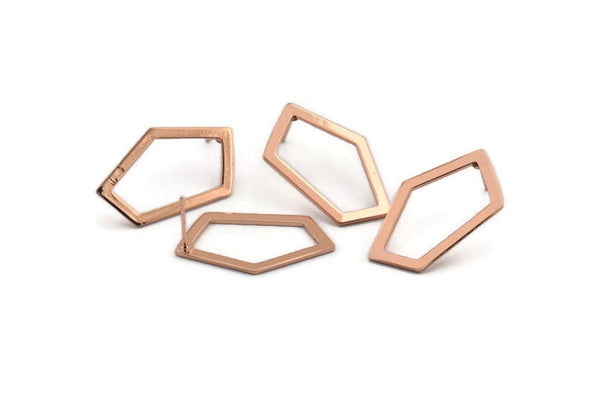 Rose Gold Geometric Earring, 4 Rose Gold Plated Brass Pentagonal Stud Earrings (28x16x1mm) D0766 A1169 Q1014
