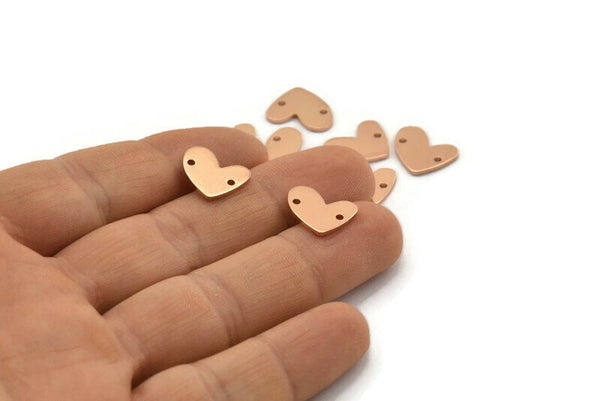 Rose Gold Plated Brass Heart Charms With 2 Holes