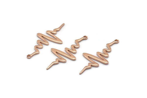 Rose Gold Plated Brass Heart Rhythm Shaped Charms With 1 Loop