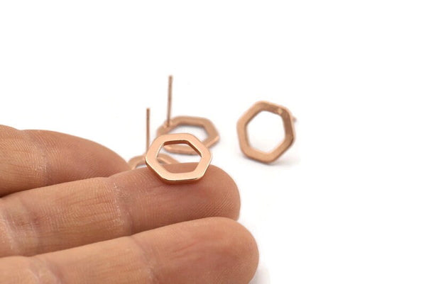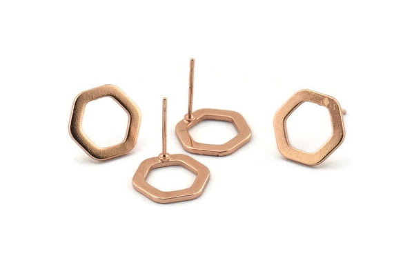 Rose Gold Hexagon Earring, 4 Rose Gold Plated Brass Hexagon Stud Earrings (12x2x1mm) D0056 A1129