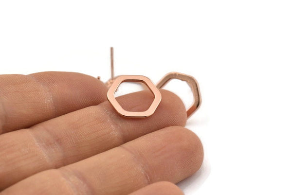 Rose Gold Plated Brass Hexagon Stud Earrings