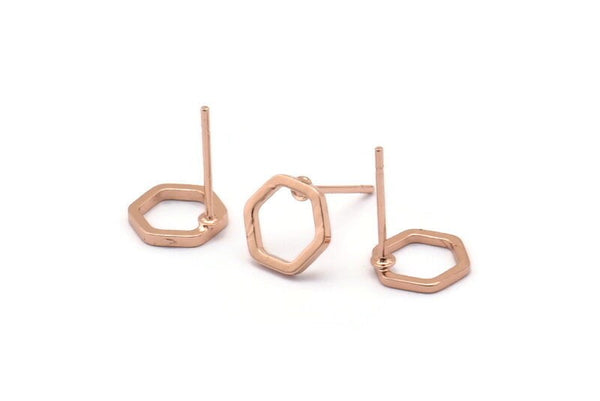 Rose Gold Plated Brass Hexagon Stud Earrings