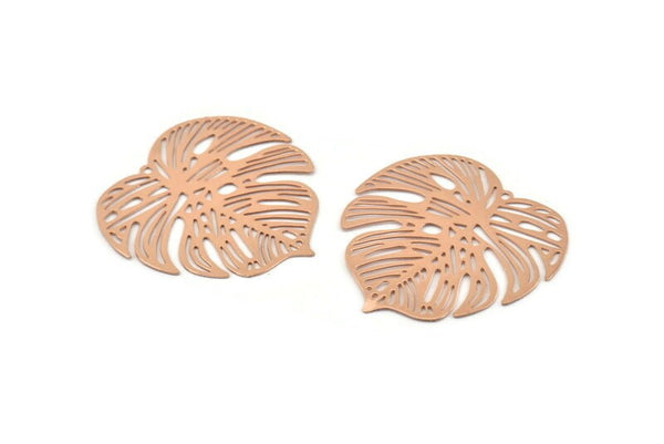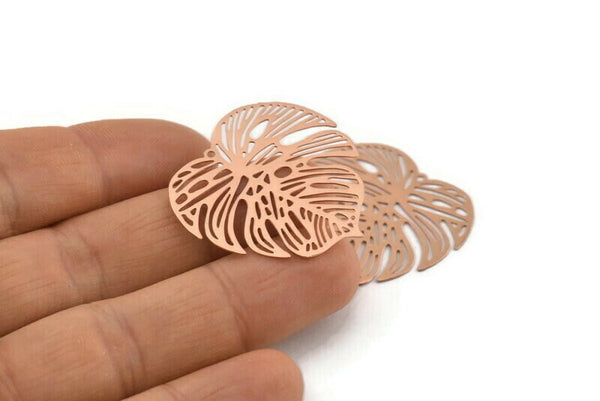 Rose Gold Leaf Charm, 4 Rose Gold Plated Brass Leaf Charms With 1 Hole, Earrings (32mm) D0661