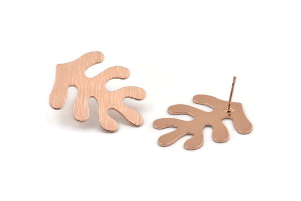 Textured Rose Gold Plated Brass Leaf Stud Earrings