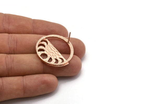 Rose Gold Plated Brass Moon Phases Stud Earrings