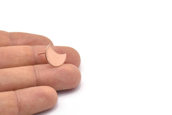 Rose Gold Plated Brass Crescent Moon Stud Earrings