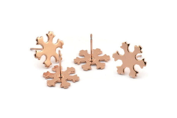 Rose Gold Plated Brass Snowflake Stud Earrings