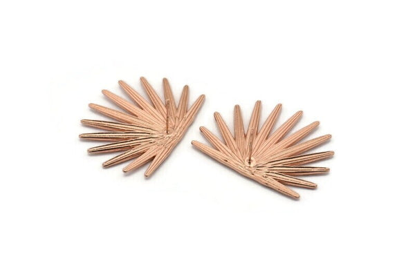 Rose Gold Sun Earring, 2 Rose Gold Plated Brass Sunshine Stud Earrings (38x28mm) N0706 Q0802