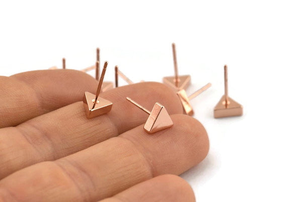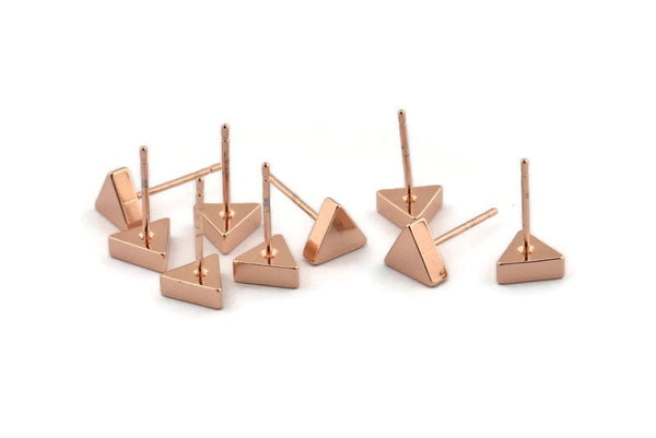 Rose Gold Triangle Earring, 4 Rose Gold Brass Triangle Stud Earrings (7x15mm) D938