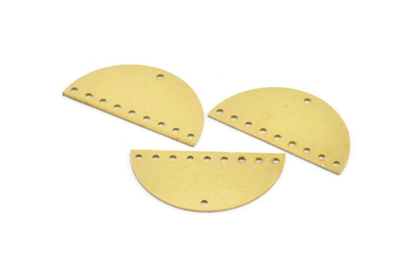 Semi Circle Charm, 4 Raw Brass Half Moon Shaped Charms With 10 Holes, Earring Findings (40x20x0.80mm) A3034