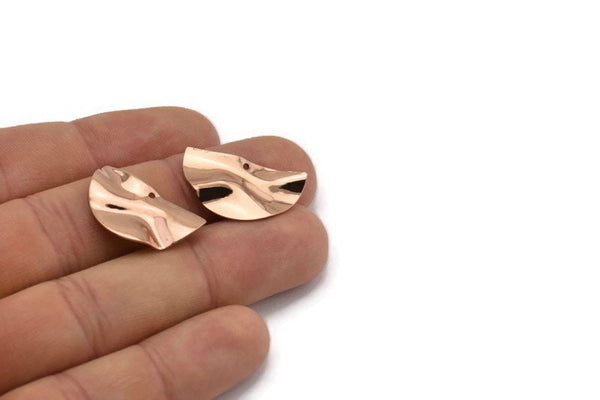 Rose Gold Plated Brass Wavy Half Moon Charms With 1 Hole