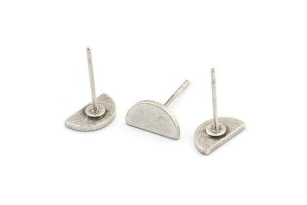 Antique Silver Plated Brass Half Moon Stud Earrings