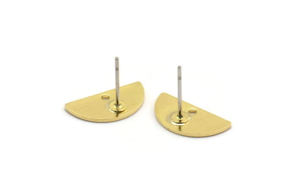 Semi Circle Earring, 12 Raw Brass Semi Circle Stud Earrings With 1 Hole (15x7.5x0.80mm) E122 A6173