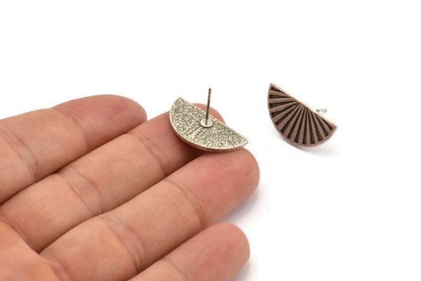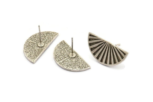 Antique Silver Plated Brass Half Moon Stud Earrings