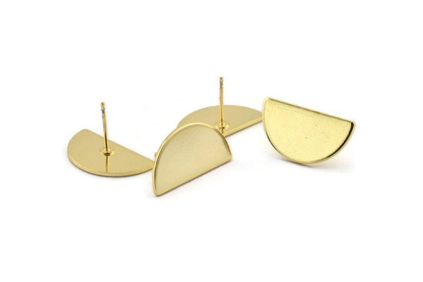 Gold Plated Brass Half Moon Stud Earrings