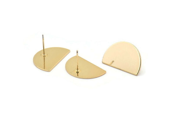 Semi Circle Earring, 4 Gold Plated Brass Half Moon Stud Earrings (22x14x0.80mm) M401 A1623