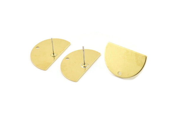 Semi Circle Earring, 6 Raw Brass Moon Stud Earrings With 1 Hole (22x14x0.80mm) M403 A3983