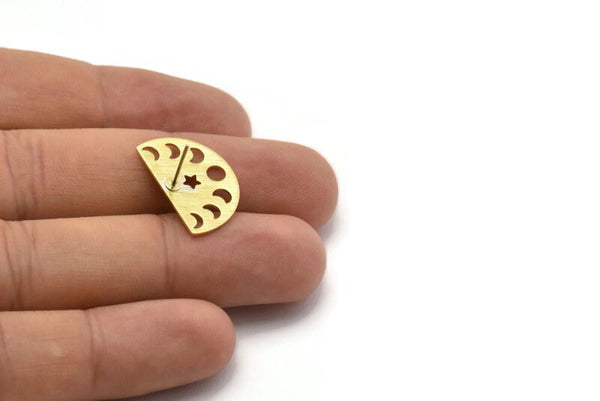 Semi Circle Earring, 6 Textured Raw Brass Moon Phases Stud Earrings (22x14x0.80mm) M01561 A2454