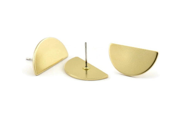 Semi Circle Earring, 8 Raw Brass Half Moon Stud Earrings (22x12x1mm) D1091 A1329