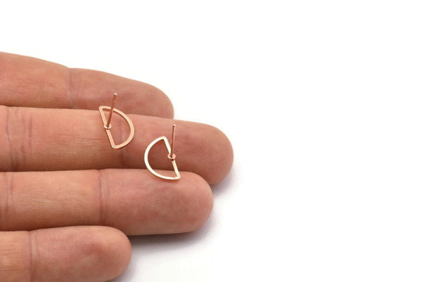 Rose Gold Plated Brass Semi Circle Stud Earrings