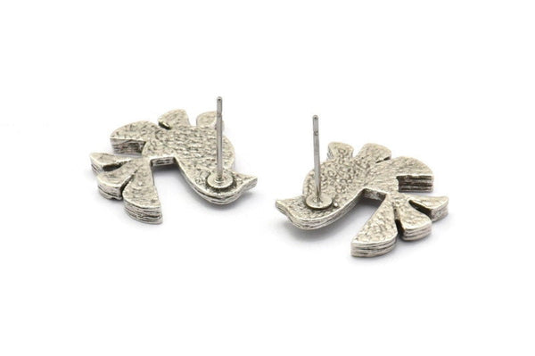 Silver Bird Earring, 2 Antique Silver Plated Brass Bird Stud Earrings (19x18x2mm) N1671