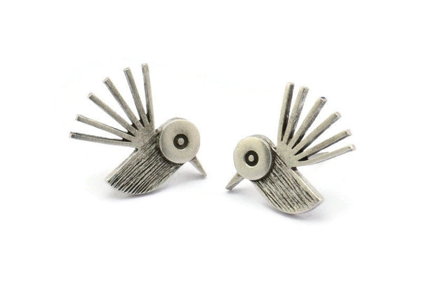 Silver Bird Earring, 2 Antique Silver Plated Brass Bird Stud Earrings (20x15x1.5mm) N1688 H0929