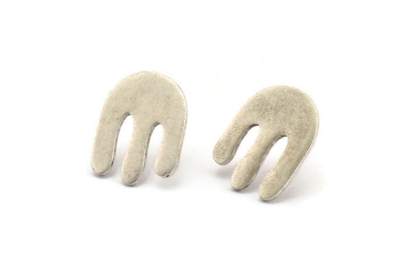 Silver Cactus Earring, 2 Antique Silver Plated Brass Cactus Stud Earrings (19x15mm) N1437