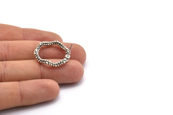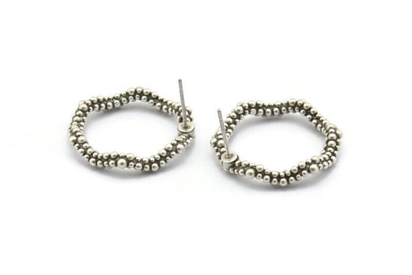 Silver Circle Earring, 2 Antique Silver Plated Brass Wavy Circle Stud Earrings (24x3mm) N1696