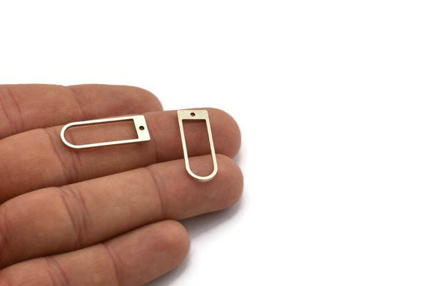 Antique Silver Plated Brass D Shaped Charms With 1 Hole