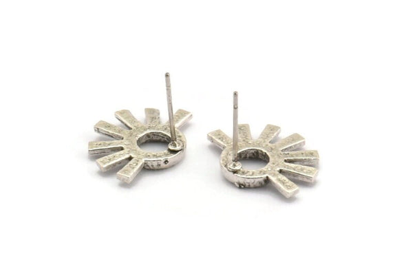 Hammered Antique Silver Plated Brass Tiny Flower Stud Earring