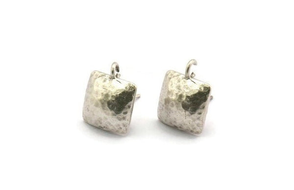 Antique Silver Plated Brass Square Earring Posts With 1 Loop