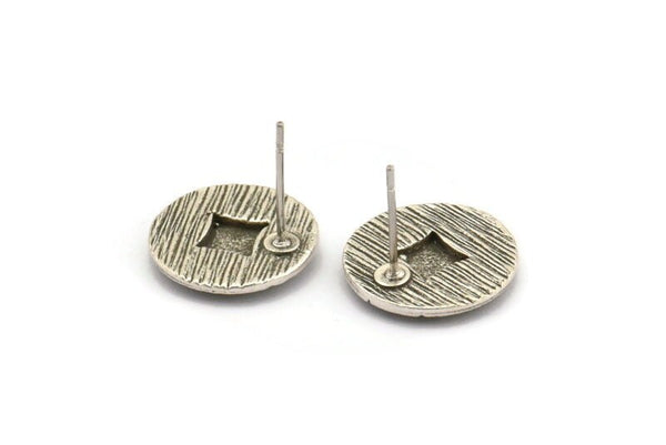 Antique Silver Plated Brass Round Earring Stud