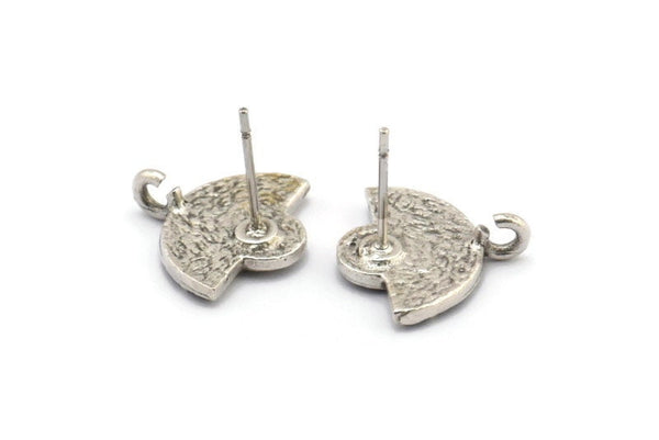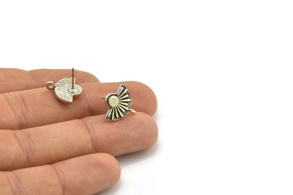 Antique Silver Plated Brass Semi Circle Earrings Stud With 1 Loop