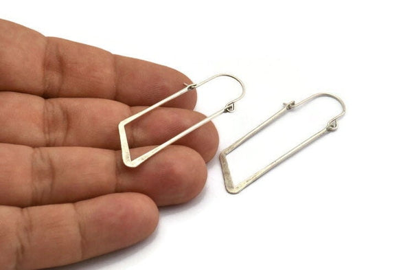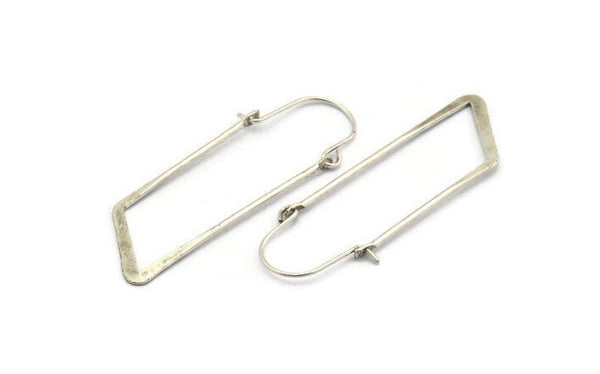 Silver Earring Wires, 4 Antique Silver Plated Brass Earring Studs, Wire Hoops (49x15x1x0.70mm) D1568 Q0490