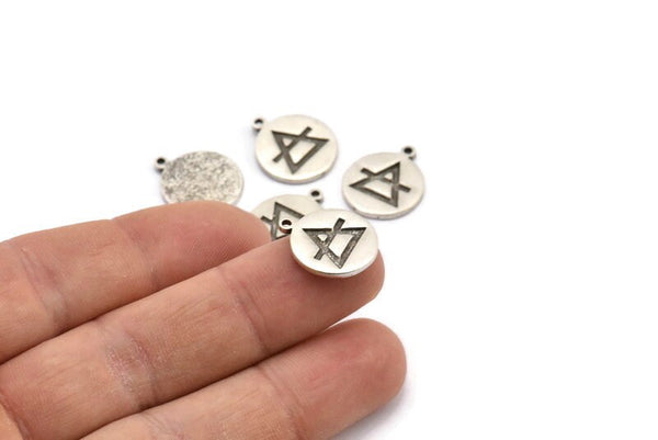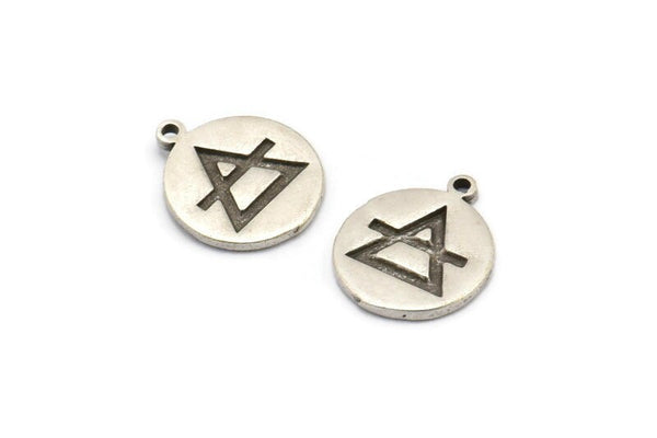 Antique Silver Plated Brass Earth Element Symbol Charms With 1 Loop