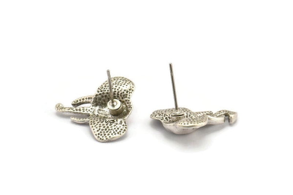 Silver Elephant Earring, 2 Antique Silver Plated Brass Elephant Stud Earrings (19mm) N1042