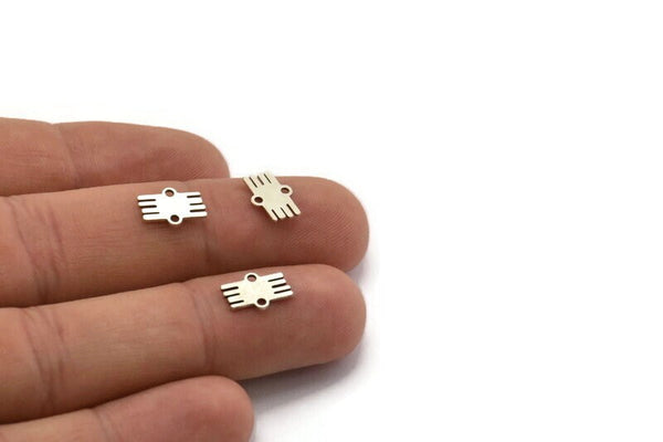 Antique Silver Plated Brass Ethnic Motif Charms With 2 Loops