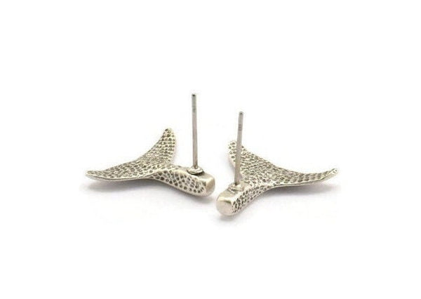 Antique Silver Plated Brass Fish Tail Stud Earrings