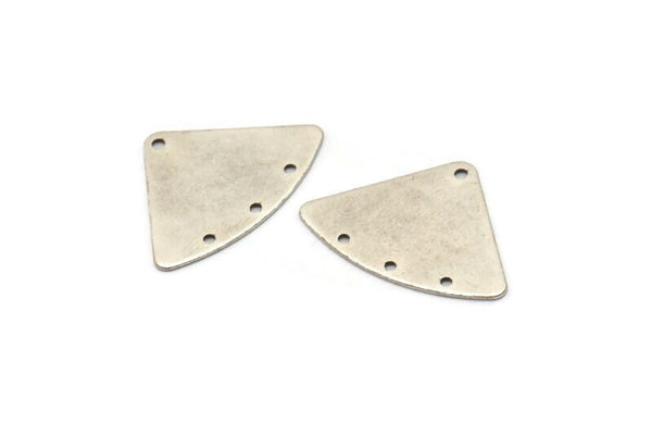 Silver Geometric Charm, 6 Antique Silver Plated Brass Fan Connectors With 4 Holes, Earrings, Findings (18x26x0.60mm) D902