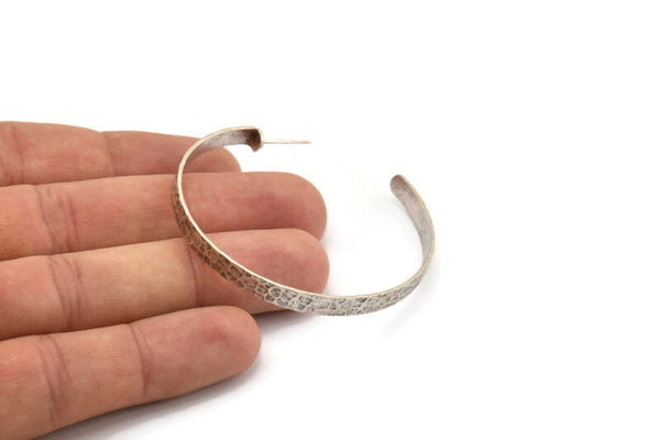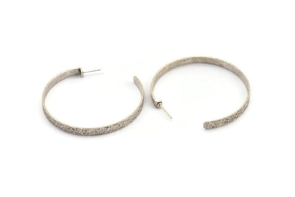 Silver Geometric Earring, 2 Hammered Antique Silver Plated Brass Circle Stud Earrings (53x5x1mm) N1806