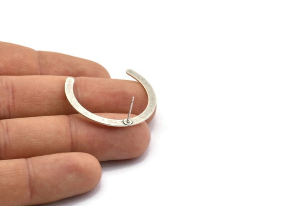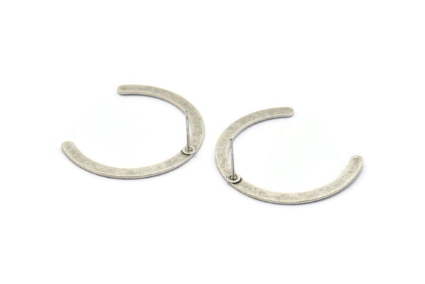 Silver Geometric Earring, 4 Antique Silver Plated Brass Geometric Stud Earrings (34x3x0.80mm) A1659 A1798