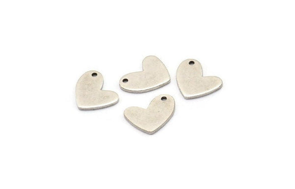 Antique Silver Plated Brass Heart Charms With 1 Hole