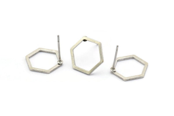 Antique Silver Plated Brass Hexagon Stud Earrings