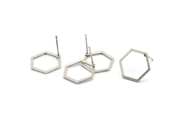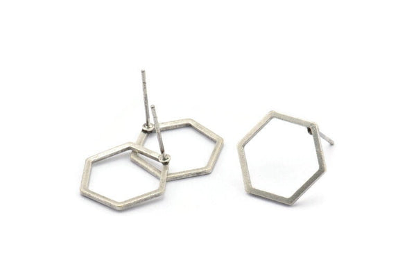 Antique Silver Plated Brass Hexagon Stud Earrings